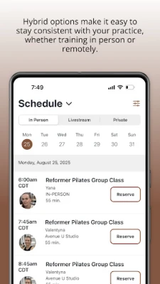 Inside the app, you’ll find a wide variety of class types including reformer Pilates, mat Pilates, aerial yoga available at the Brooklyn studio, and specialized programs for prenatal and postnatal care. Each class is taught by experienced instructors who help you build strength, flexibility, and confidence at your own pace.