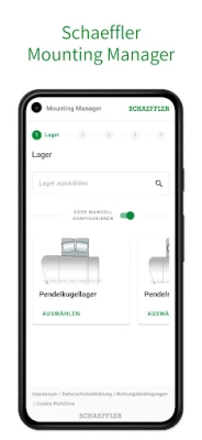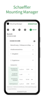 The Schaeffler Mounting Manager comfortably assists in selecting the right bearing installation and offers following possibilities: shows various mechanical and hydraulic procedures, calculates required installation parameters, gives useful installation hints, creates a list of required accessories and tools