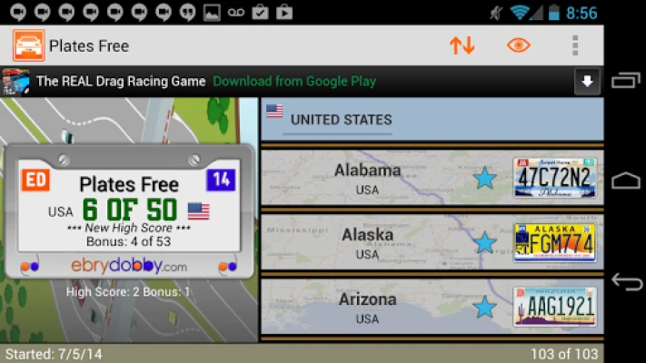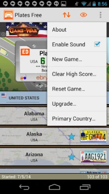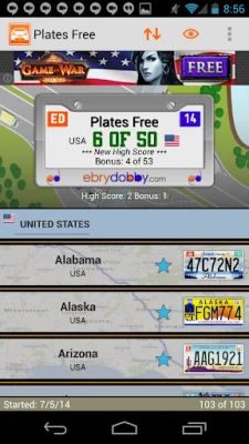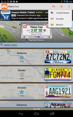 • 57 U.S. license plates: one for each of the U.S. 50 states, one for Washington D.C., one for the U.S. Government, and five for the U.S. territories. Eleven more in the paid version.