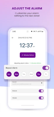 Customized alarm for Salat: Most apps are built-in with default Salat times and alarms, but our Prayer Alarm is customizable. You can set your preferred time for alarm based on Salat times accordingly. Moreover, you can use it as your default alarm app to wake you up in the morning and schedule routines based on Salat times.