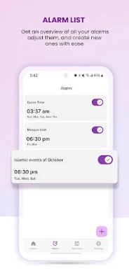 Introducing the Prayer Alarm app - your personal assistant for keeping track of daily Salat times. With our app, you can set customized alarms for each salat, ensuring you never miss a prayer again. The app lets you set custom alarms for any time, making it an everyday tool for life. With an effective ‘Quiet’ mode, you can specify times to keep your phone silent to perform prayers uninterrupted. Apart from that, get precise timings for sunrise, sunset, and learn about the forbidden times to offer Salat. Download the Prayer Alarm app now and stay on track with your daily prayers.