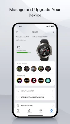 [ Smart device management assistant] : Zepp can be used to manage the settings for Zepp and Amazfit smart devices(Amazfit GTR 5, Amazfit GTR 4, Amazfit Bip 5, Amazfit Active, Amazfit T-REX2, Amazfit Falcon, and so on.), such as notification management, watch face replacement, widget sorting and others.